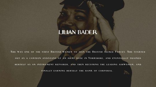 Born Lilian Bailey on February 18, 1918, Lilian Bader made history as one of the pioneering Black women to enlist in the British armed forces. Her legacy is marked by her courage, determination, and trailblazing spirit, breaking barriers and paving the way for future generations of women of colour in the military. On March 14, 2015, the world lost a true hero and inspiration, but her impact and contributions will forever be remembered and celebrated.